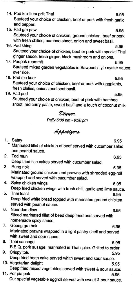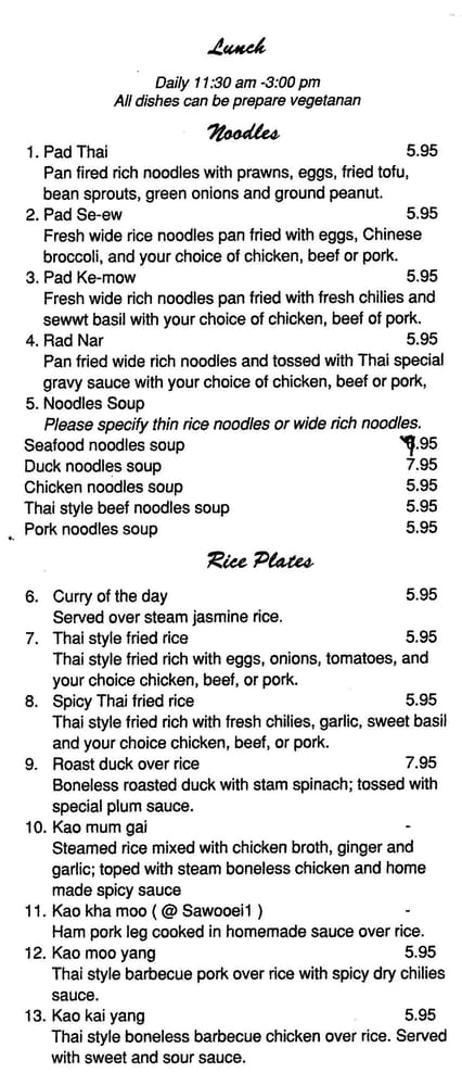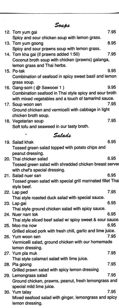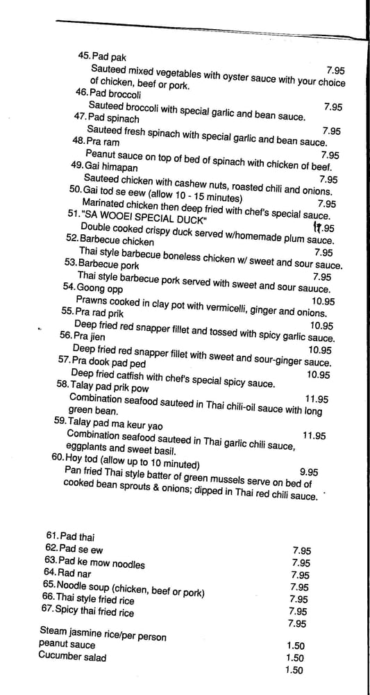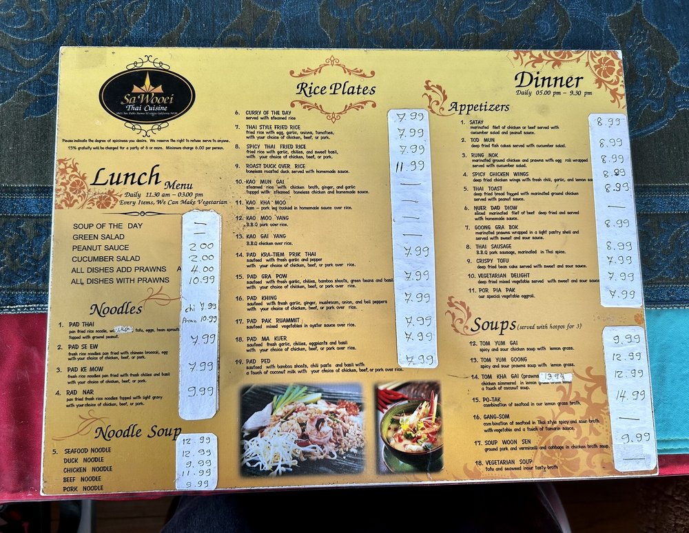 Sa Wooei Thai Cuisine Menu